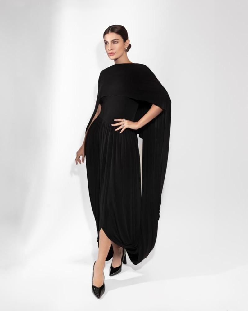 أضيفي لمسة من الفخامة إلى خزانتك مع هذا الفستان الأسود الناعم. متوفر الآن بمقاسات متعددة – لا تفوتي الفرصة